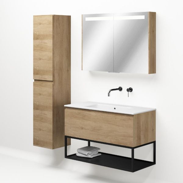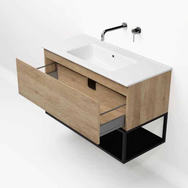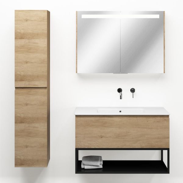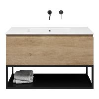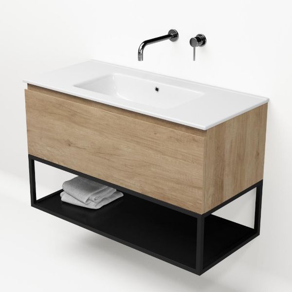 | | Bellanti Solo/Tela/Etna badmeubel 100x46 1 softclose lade olm greeploos keramische wastafel wit zonder kraangaten met mat zwart metalen frame |