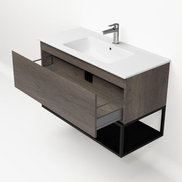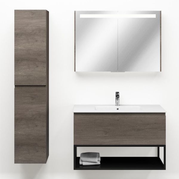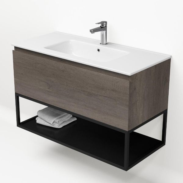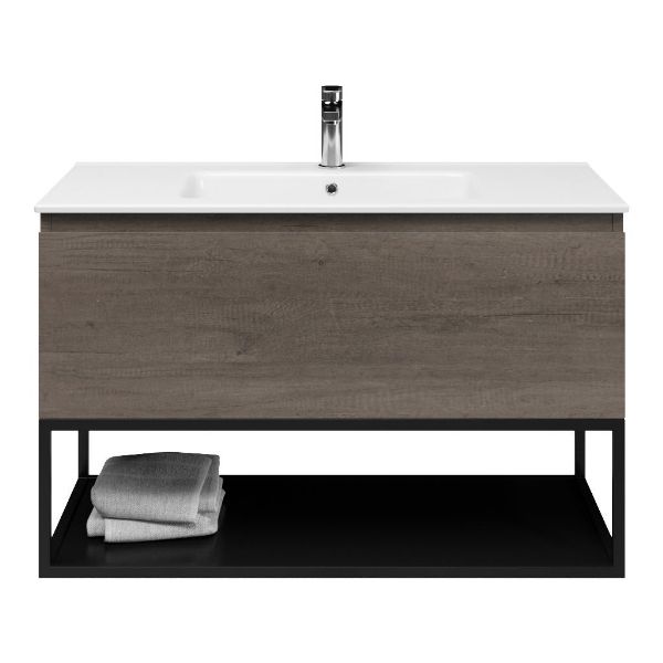 | Bellanti Solo/Tela/Etna badmeubel 100x46 1 softclose lade olm donker grijs greeploos keramische wastafel wit met 1 kraangat met mat zwart metalen frame |