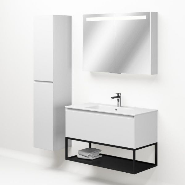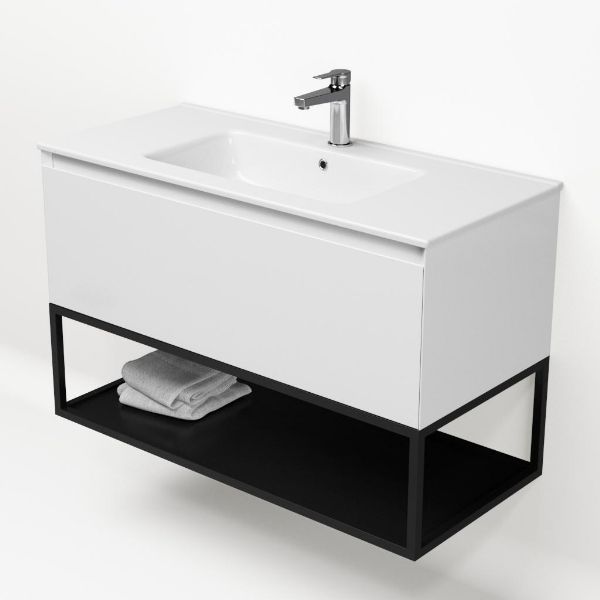 | Bellanti Solo/Tela/Etna badmeubel 100x46 1 softclose lade wit hoogglans greeploos keramische wastafel wit met 1 kraangat met mat zwart metalen frame |