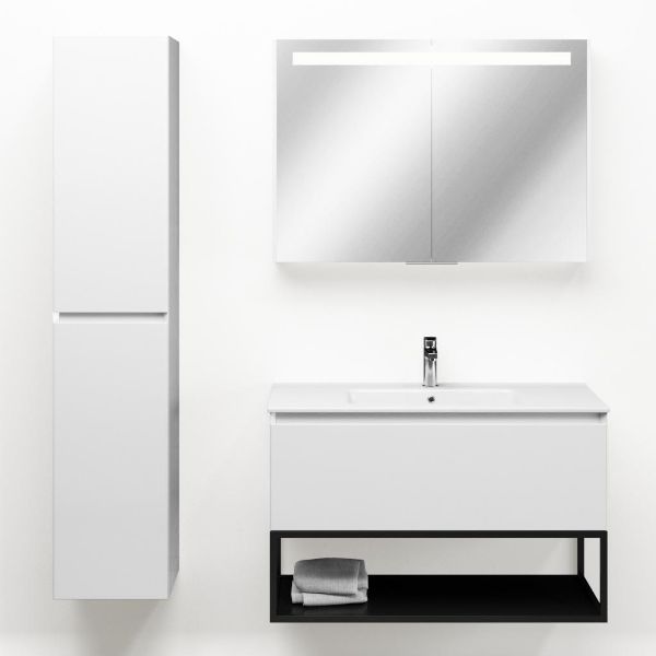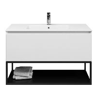 | | Bellanti Solo/Tela/Etna badmeubel 100x46 1 softclose lade wit hoogglans greeploos keramische wastafel wit met 1 kraangat met mat zwart metalen frame |