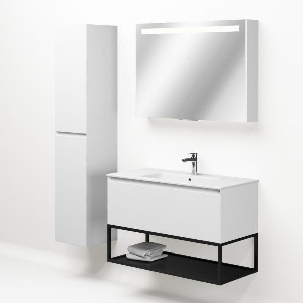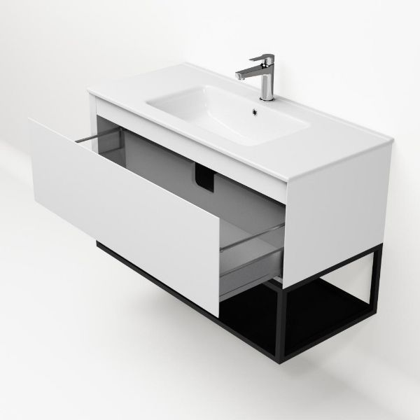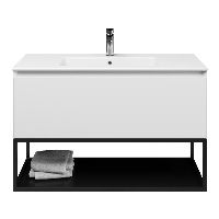 | | Bellanti Solo/Tela/Etna badmeubel 100x46 1 softclose lade wit mat greeploos keramische wastafel wit met 1 kraangat met mat zwart metalen frame |