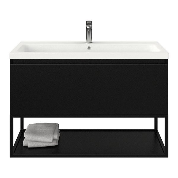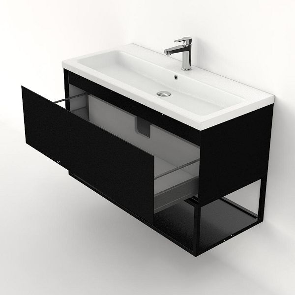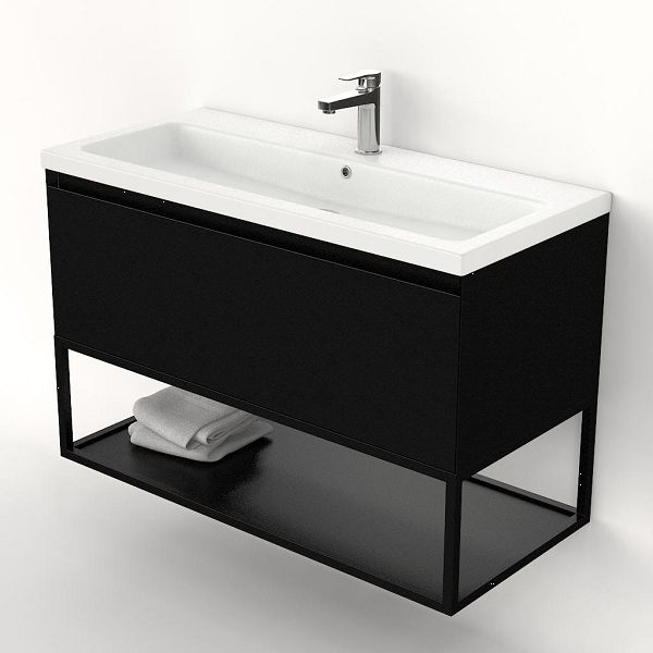 | Bellanti Solo/Tela/Amelia badmeubel 100x46 1 softclose lade zwart mat greeploos keramische wastafel wit mat met 1 kraangat met mat zwart metalen frame |