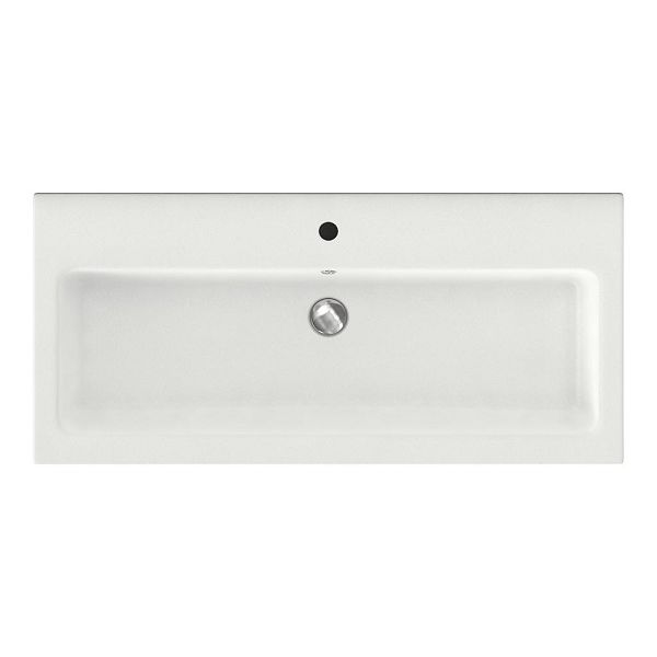 Greeploos badkamermeubel in de kleur zwart mat is 100 cm breed. De wastafel is vervaardig in keramiek en heeft de kleur wit mat keramiek. Dit badkamermeubel met deze wastafel is leverbaar tussen de 60 cm t/m 140 cm
