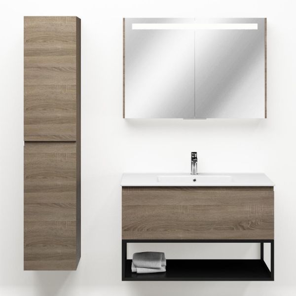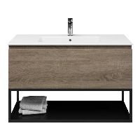 | | Bellanti Solo/Tela/Etna badmeubel 100x46 1 softclose lade eiken donker greeploos keramische wastafel wit met 1 kraangat met mat zwart metalen frame |