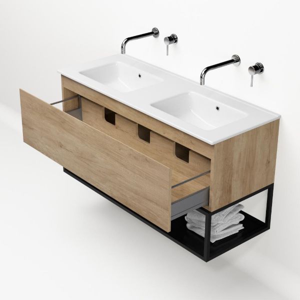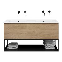 | | Bellanti Solo/Tela/Etna badmeubel 120x46 1 softclose lade olm greeploos keramische wastafel dubbel wit zonder kraangaten met mat zwart metalen frame |