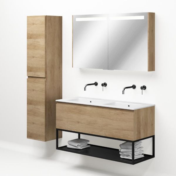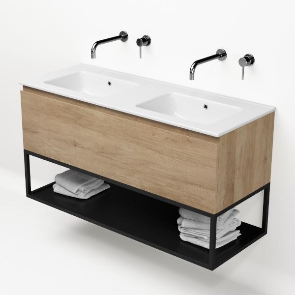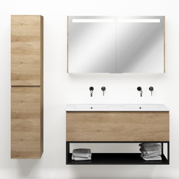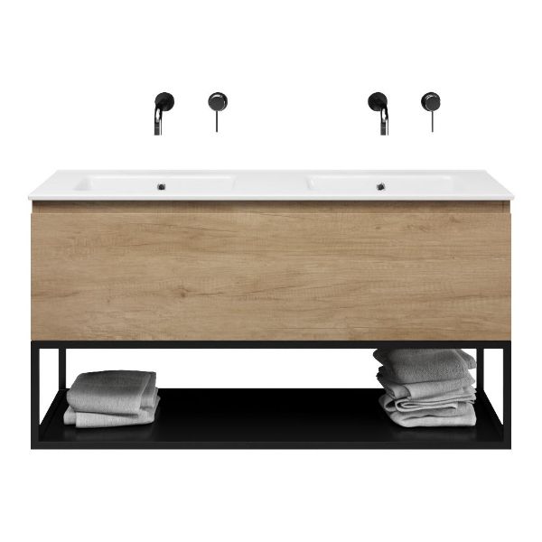 | Bellanti Solo/Tela/Etna badmeubel 120x46 1 softclose lade olm greeploos keramische wastafel dubbel wit zonder kraangaten met mat zwart metalen frame |