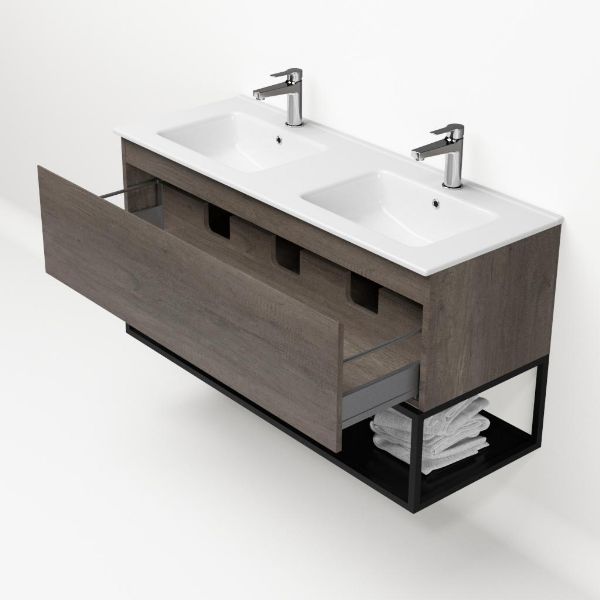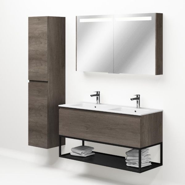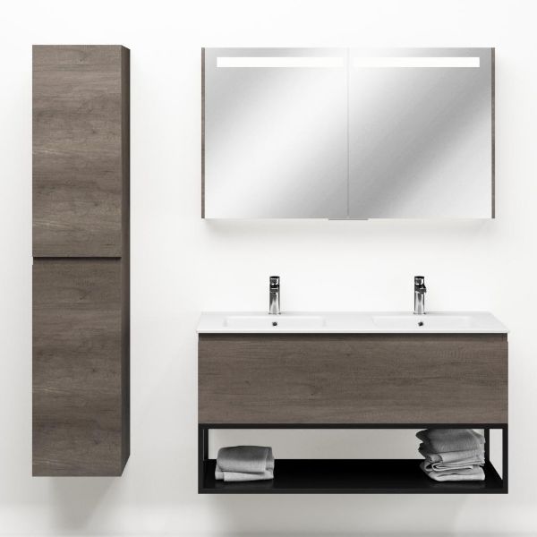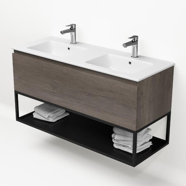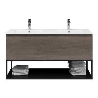 | | Bellanti Solo/Tela/Etna badmeubel 120x46 1 softclose lade olm donker grijs greeploos keramische wastafel dubbel wit met 2 kraangaten met mat zwart metalen frame |