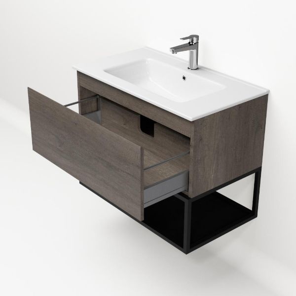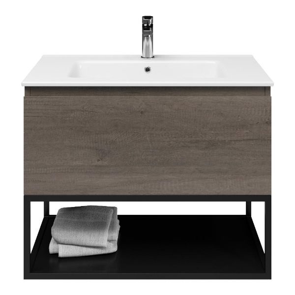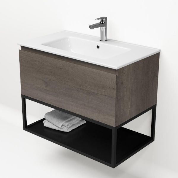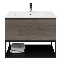 | Bellanti Solo/Tela/Etna badmeubel 80x46 1 softclose lade olm donker grijs greeploos keramische wastafel wit met 1 kraangat met mat zwart metalen frame |