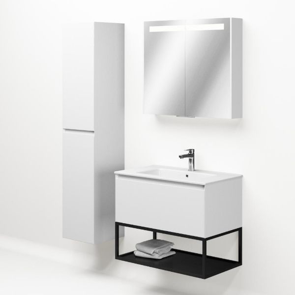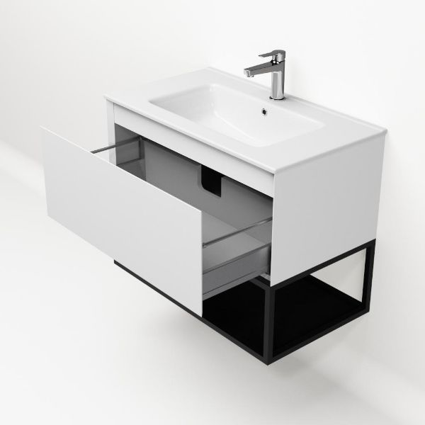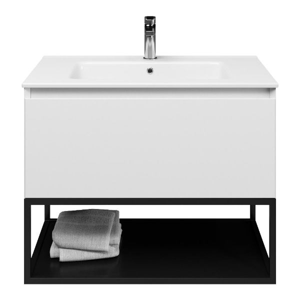 | Bellanti Solo/Tela/Etna badmeubel 80x46 1 softclose lade wit mat greeploos keramische wastafel wit met 1 kraangat met mat zwart metalen frame |