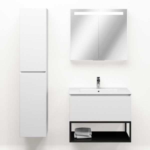 | | Bellanti Solo/Tela/Etna badmeubel 80x46 1 softclose lade wit mat greeploos keramische wastafel wit met 1 kraangat met mat zwart metalen frame |