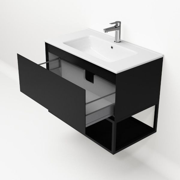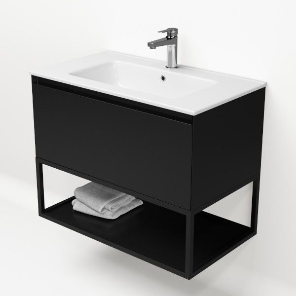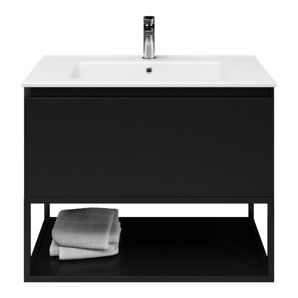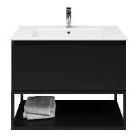 | | Bellanti Solo/Tela/Etna badmeubel 80x46 1 softclose lade zwart mat greeploos keramische wastafel wit met 1 kraangat met mat zwart metalen frame |