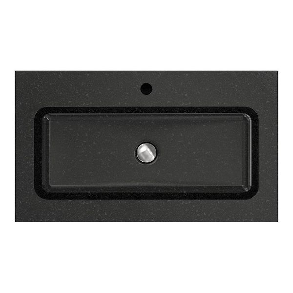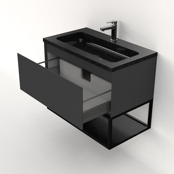 | | Bellanti Solo/Tela/Square badmeubel 80x46 1 softclose lade antraciet mat greeploos natuursteen wastafel shanxi black met 1 kraangat met mat zwart metalen frame |