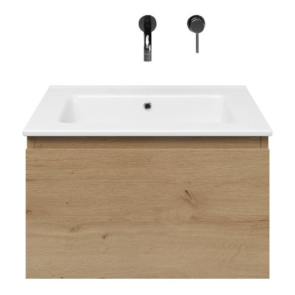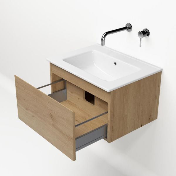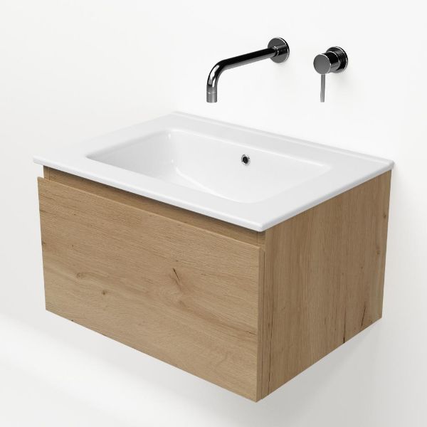 | | Bellanti Solo/Etna badmeubel 60x46 1 softclose lade eiken natuur greeploos keramische wastafel wit zonder kraangaten |