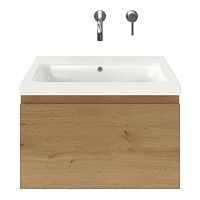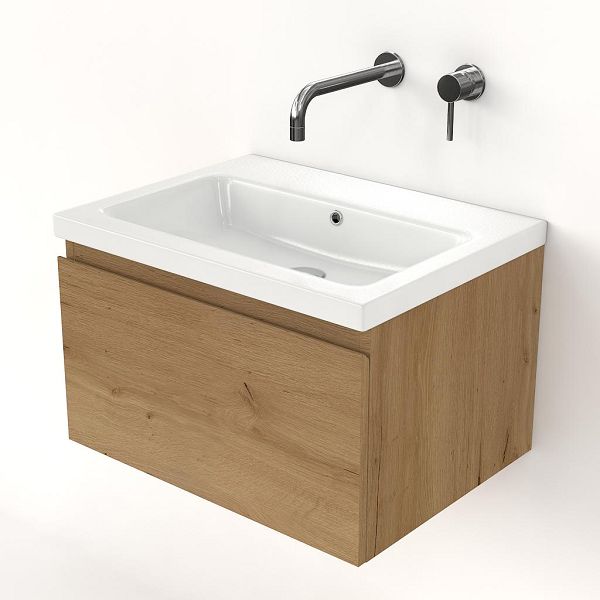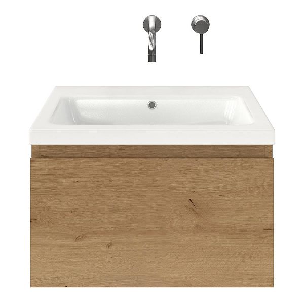 | | Bellanti Solo/Amelia badmeubel 60x46 1 softclose lade eiken natuur greeploos keramische wastafel wit glans zonder kraangaten |