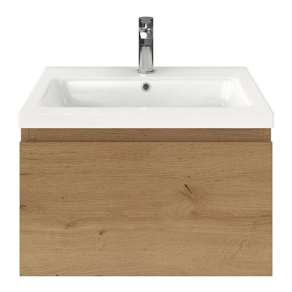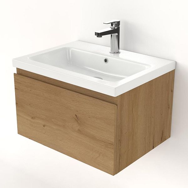 | | Bellanti Solo/Amelia badmeubel 60x46 1 softclose lade eiken natuur greeploos keramische wastafel wit glans met 1 kraangat |
