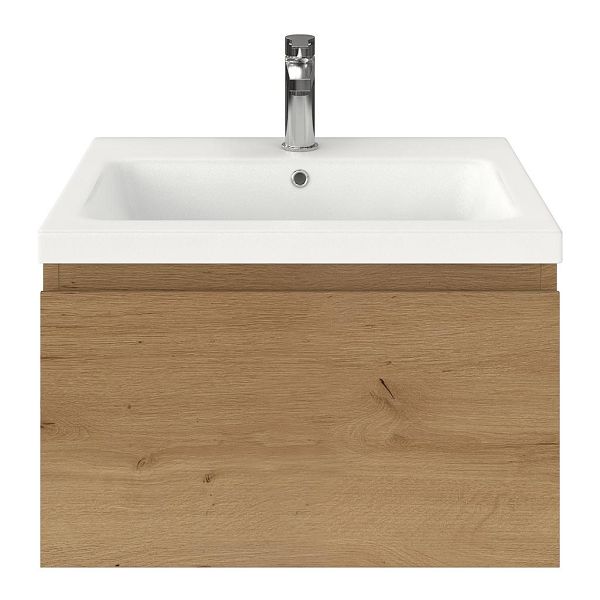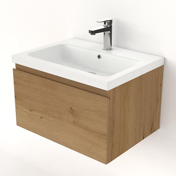 | | Bellanti Solo/Amelia badmeubel 60x46 1 softclose lade eiken natuur greeploos keramische wastafel wit mat met 1 kraangat |