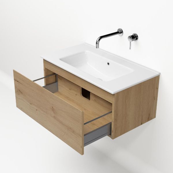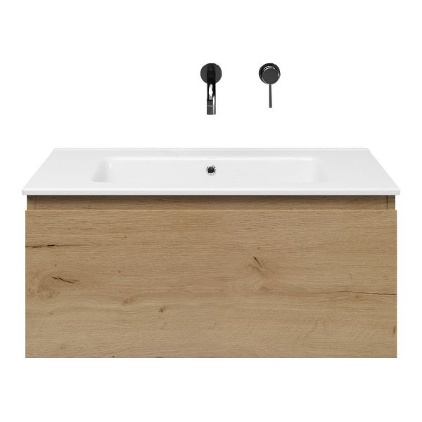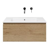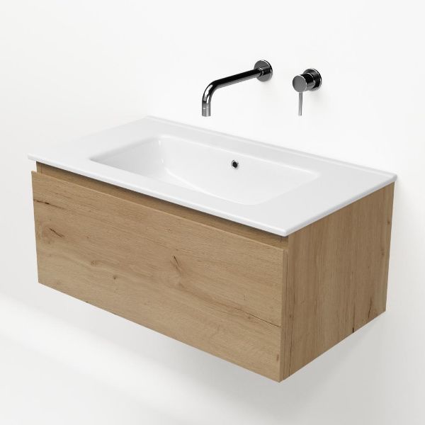 | | Bellanti Solo/Etna badmeubel 80x46 1 softclose lade eiken natuur greeploos keramische wastafel wit zonder kraangaten |