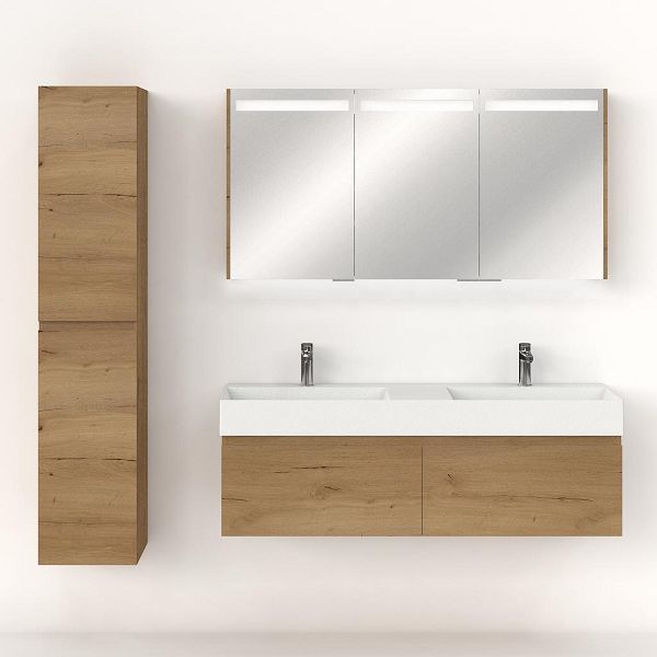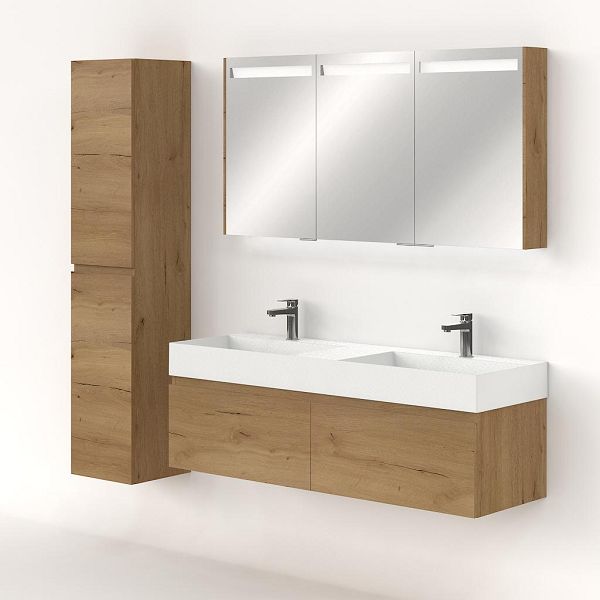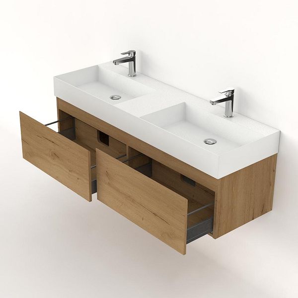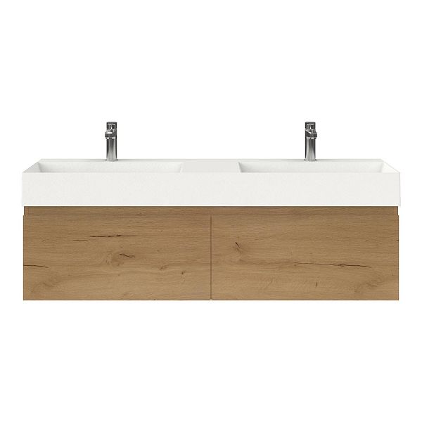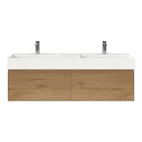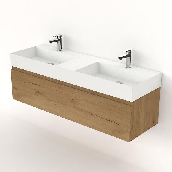 | Bellanti Solo/Azzurra badmeubel 140x46 2 softclose laden eiken natuur greeploos keramische wastafel dubbel wit mat met 2 kraangaten |