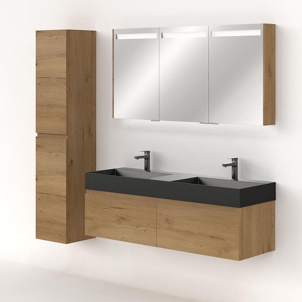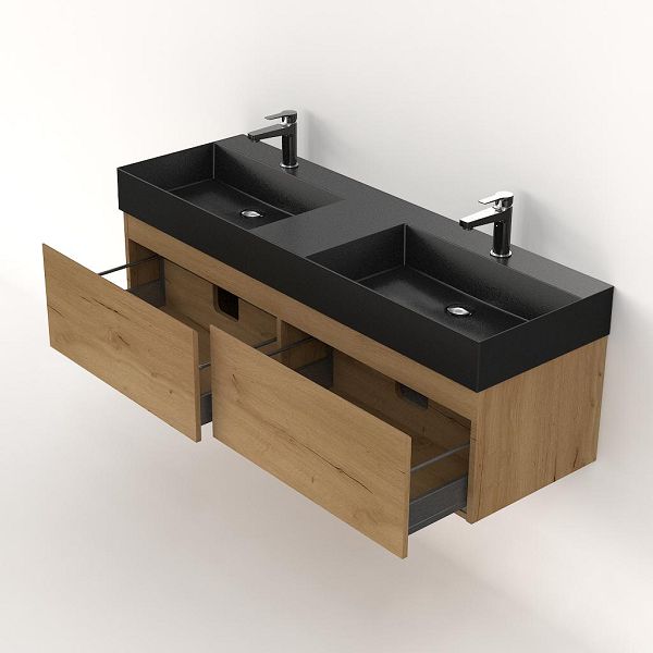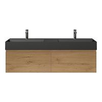 | Bellanti Solo/Azzurra badmeubel 140x46 2 softclose laden eiken natuur greeploos keramische wastafel dubbel antraciet mat met 2 kraangaten |