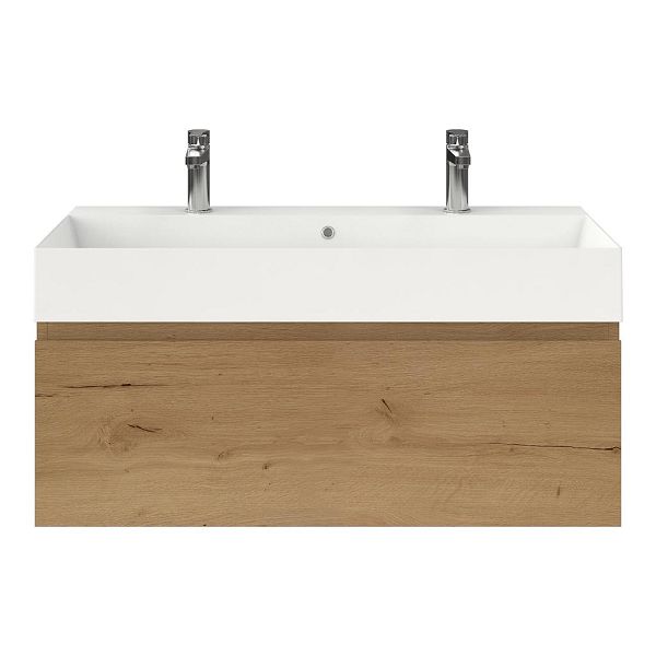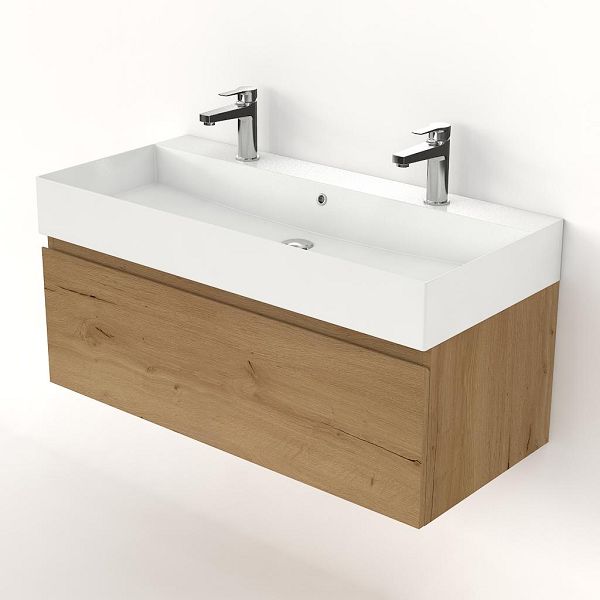 | | Bellanti Solo/Azzurra badmeubel 100x46 1 softclose lade eiken natuur greeploos keramische wastafel wit glans met 2 kraangaten |