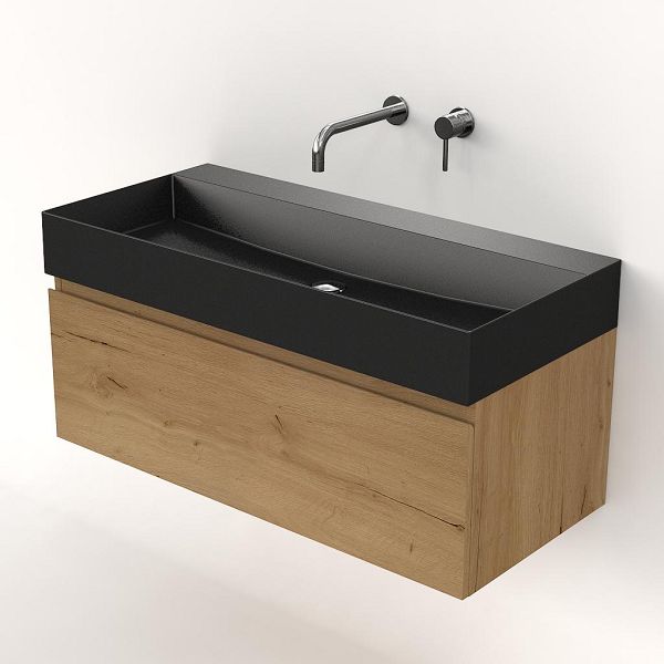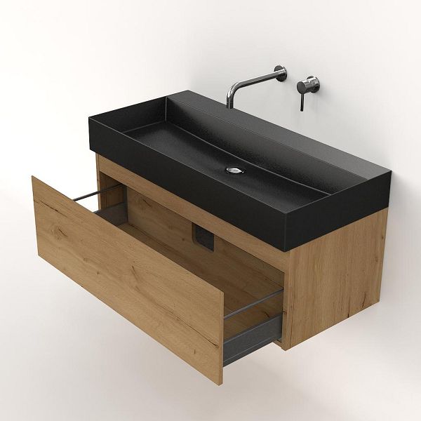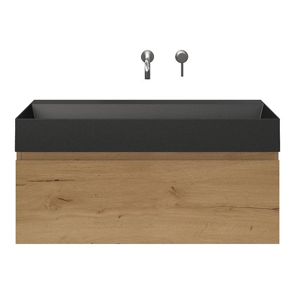 | | Bellanti Solo/Azzurra badmeubel 100x46 1 softclose lade eiken natuur greeploos keramische wastafel antraciet mat zonder kraangaten |