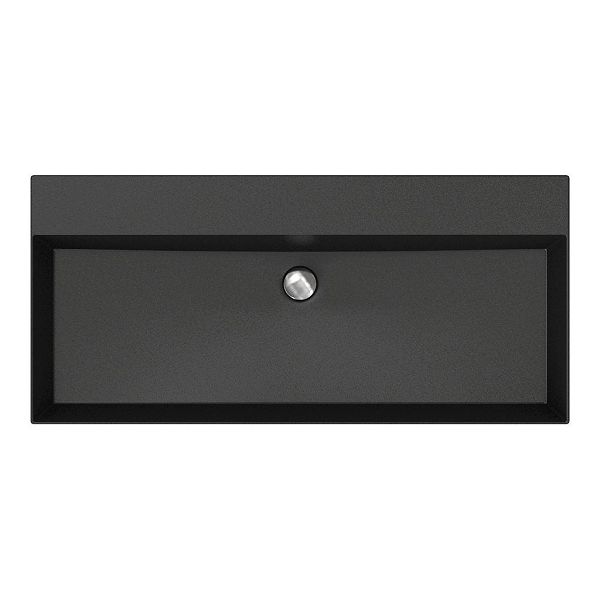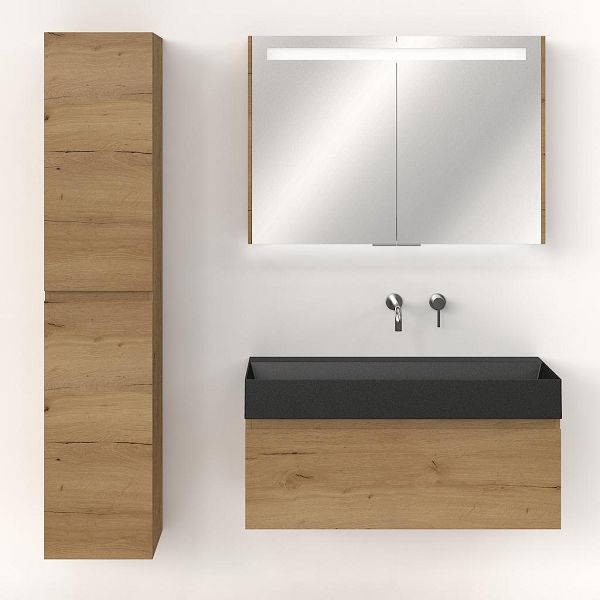 Greeploos badkamermeubel in de kleur eiken natuur is 100 cm breed. De wastafel is vervaardig in keramiek en heeft de kleur antraciet mat keramiek. Dit badkamermeubel met deze wastafel is leverbaar tussen de 60 cm t/m 160 cm