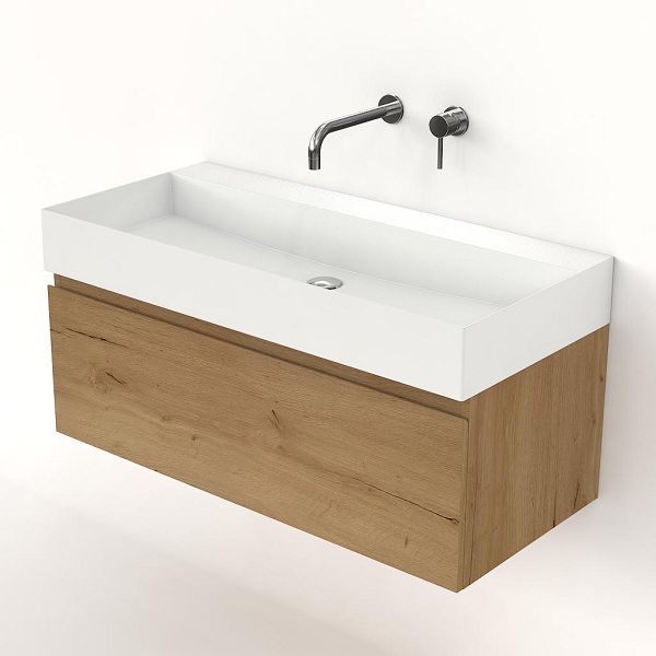 | | Bellanti Solo/Azzurra badmeubel 100x46 1 softclose lade eiken natuur greeploos keramische wastafel wit glans zonder kraangaten |