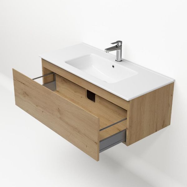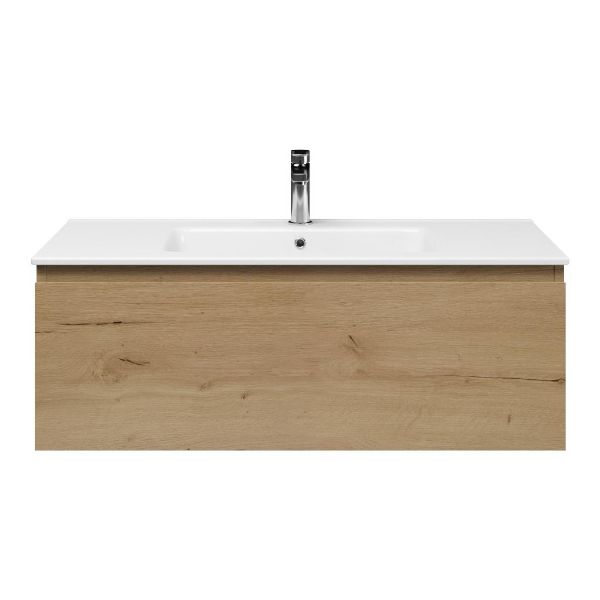 | | Bellanti Solo/Etna badmeubel 100x46 1 softclose lade eiken natuur greeploos keramische wastafel wit met 1 kraangat |