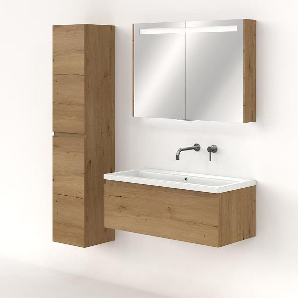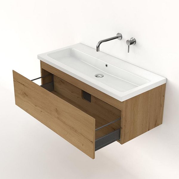 | | Bellanti Solo/Amelia badmeubel 100x46 1 softclose lade eiken natuur greeploos keramische wastafel wit glans zonder kraangaten |