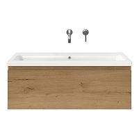| Bellanti Solo/Amelia badmeubel 100x46 1 softclose lade eiken natuur greeploos keramische wastafel wit glans zonder kraangaten |