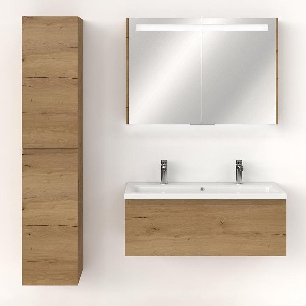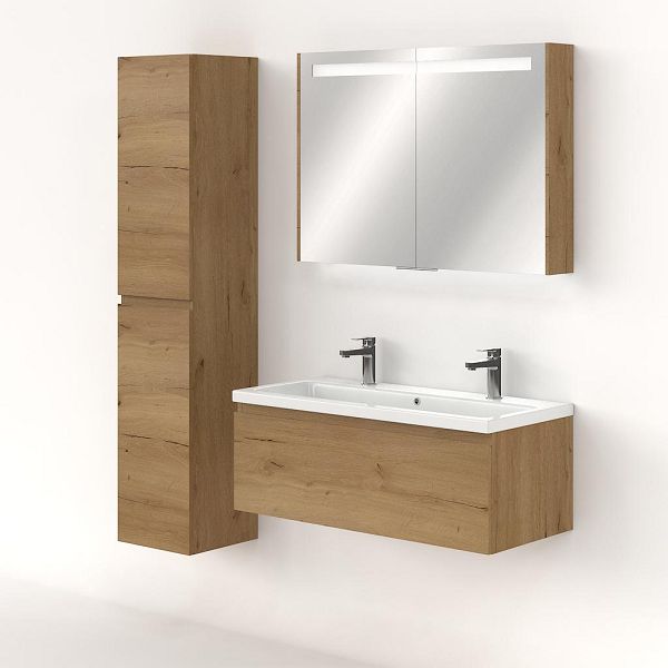 | Bellanti Solo/Amelia badmeubel 100x46 1 softclose lade eiken natuur greeploos keramische wastafel wit glans met 2 kraangaten |