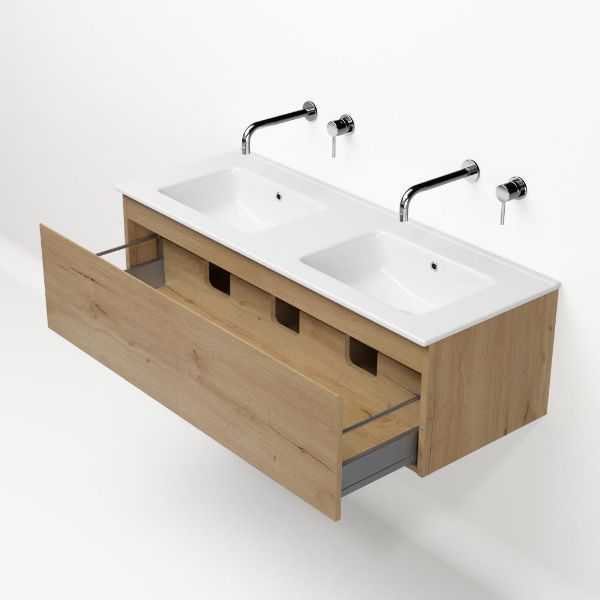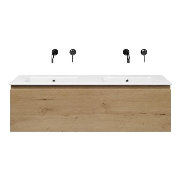| | Bellanti Solo/Etna badmeubel 120x46 1 softclose lade eiken natuur greeploos keramische wastafel dubbel wit zonder kraangaten |
