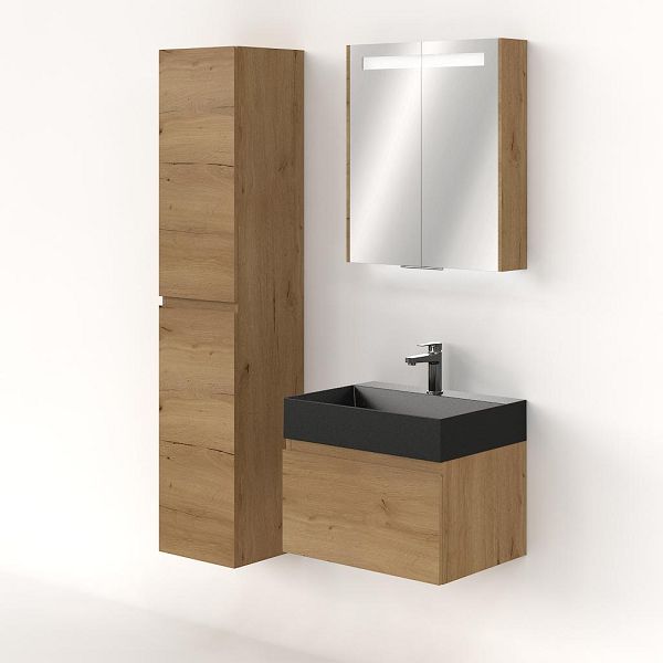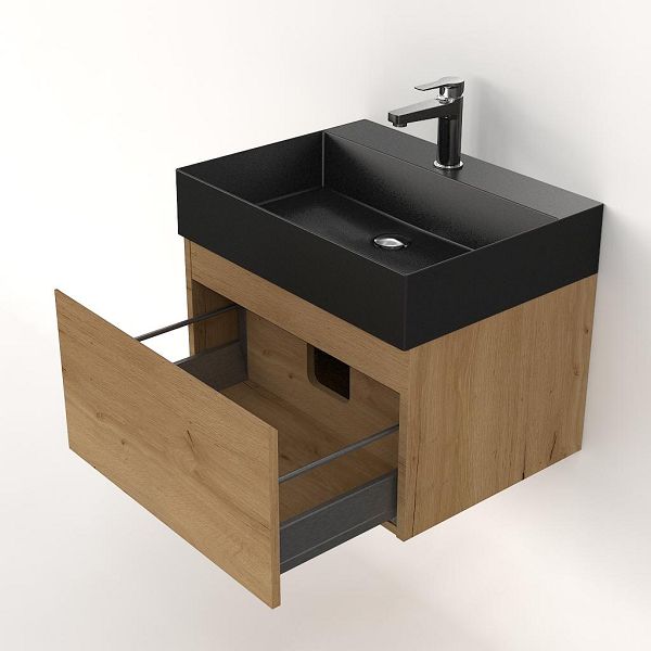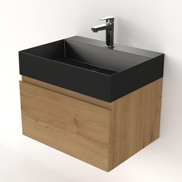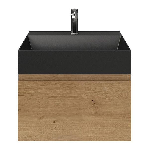 | | Bellanti Solo/Azzurra badmeubel 60x46 1 softclose lade eiken natuur greeploos keramische wastafel antraciet mat met 1 kraangat |