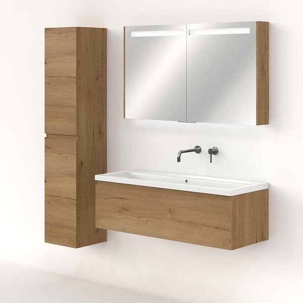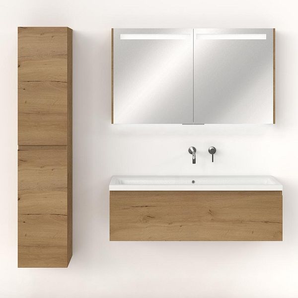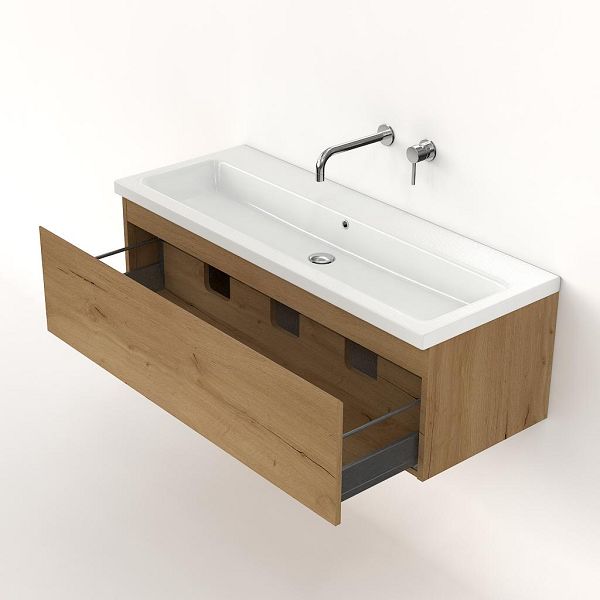 | Bellanti Solo /Amelia badmeubel 120x46 1 softclose lade eiken natuur greeploos keramische wastafel wit glans zonder kraangaten |