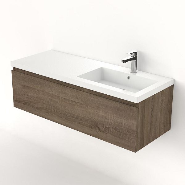 Bellanti Solo/Esta badmeubel 120x46 1 softclose lade eiken donker greeploos polystone wastafel wit met 1 kraangat
