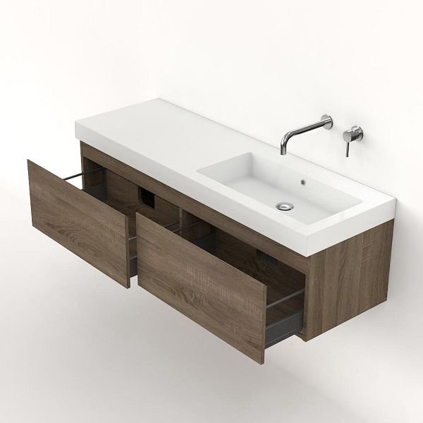 Bellanti Solo/Esta badmeubel 140x46 2 softclose laden eiken donker greeploos polystone wastafel wit zonder kraangaten