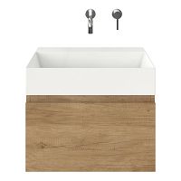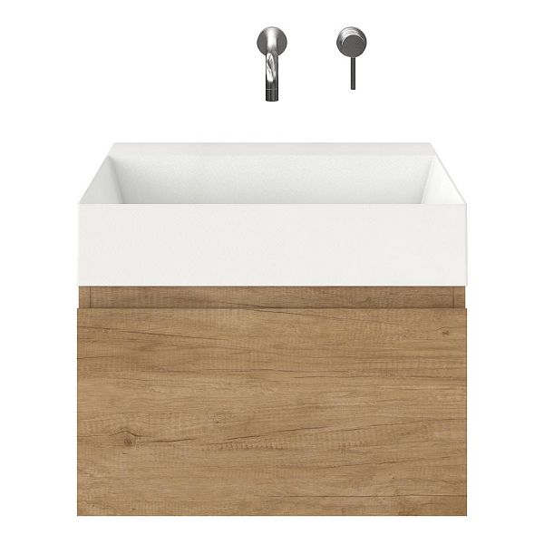 Greeploos badkamermeubel in de kleur olm is 60 cm breed. De wastafel is vervaardig in keramiek en heeft de kleur wit mat keramiek. Dit badkamermeubel met deze wastafel is leverbaar tussen de 60 cm t/m 160 cm