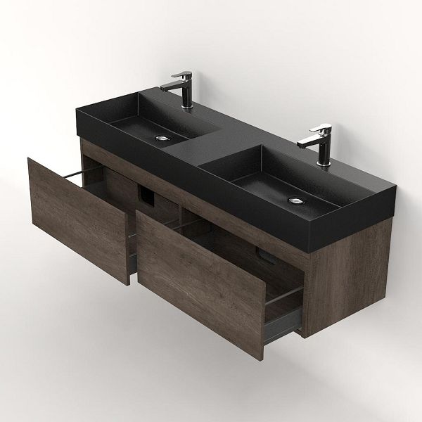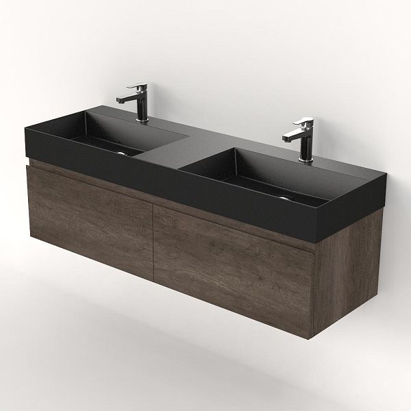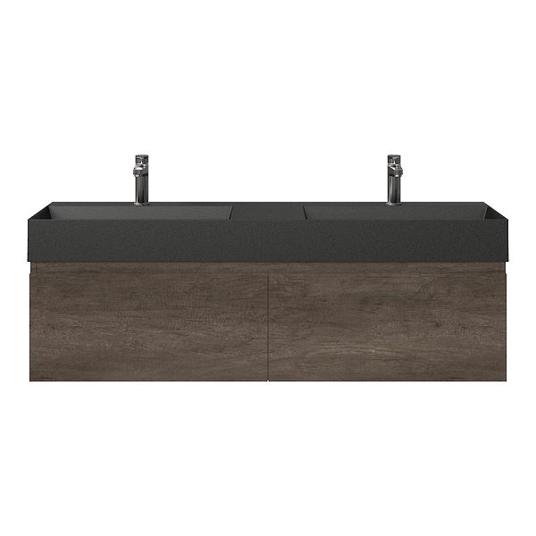 | Bellanti Solo/Azzurra badmeubel 140x46 2 softclose laden olm donker grijs greeploos keramische wastafel dubbel antraciet mat met 2 kraangaten |