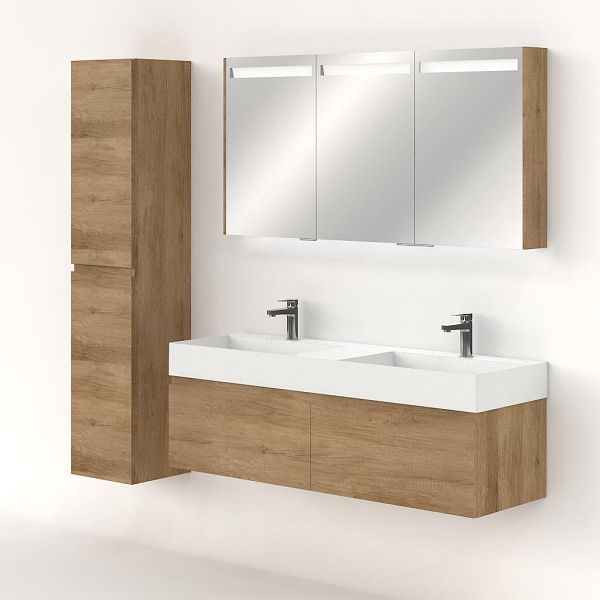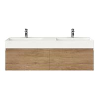 Greeploos badkamermeubel in de kleur olm is 140 cm breed. De wastafel is vervaardig in keramiek en heeft de kleur wit mat keramiek. Dit badkamermeubel met deze wastafel is leverbaar tussen de 60 cm t/m 160 cm