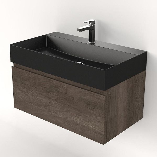 Bellanti Solo/Azzurra badmeubel 80x46 1 softclose lade olm donker grijs greeploos keramische wastafel antraciet mat met 1 kraangat