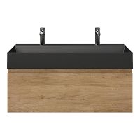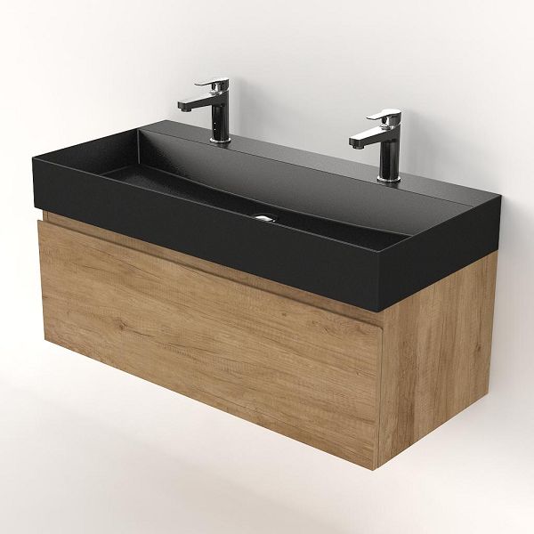 Greeploos badkamermeubel in de kleur olm is 100 cm breed. De wastafel is vervaardig in keramiek en heeft de kleur antraciet mat keramiek. Dit badkamermeubel met deze wastafel is leverbaar tussen de 60 cm t/m 160 cm