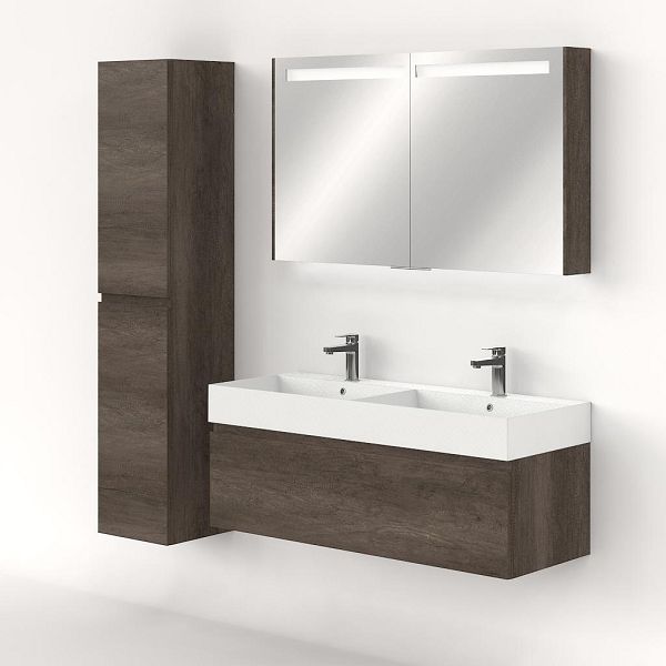 Bellanti Solo/Azzurra badmeubel 120x46 1 softclose lade olm donker grijs greeploos keramische wastafel dubbel wit mat met 2 kraangaten