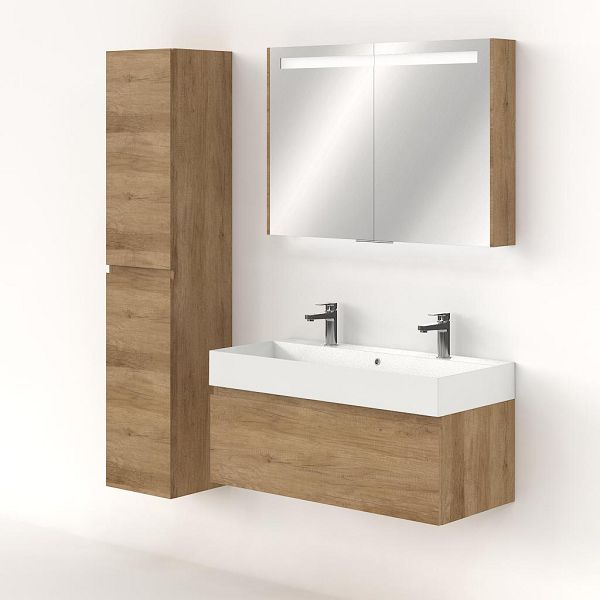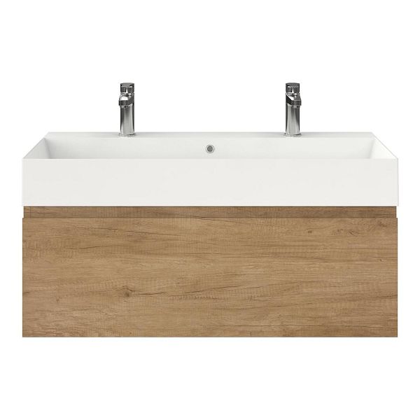 Greeploos badkamermeubel in de kleur olm is 100 cm breed. De wastafel is vervaardig in keramiek en heeft de kleur wit keramiek. Dit badkamermeubel met deze wastafel is leverbaar tussen de 60 cm t/m 160 cm