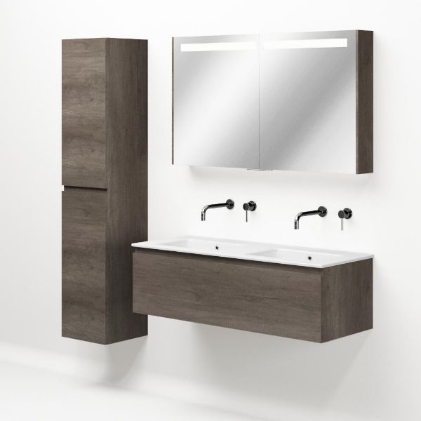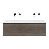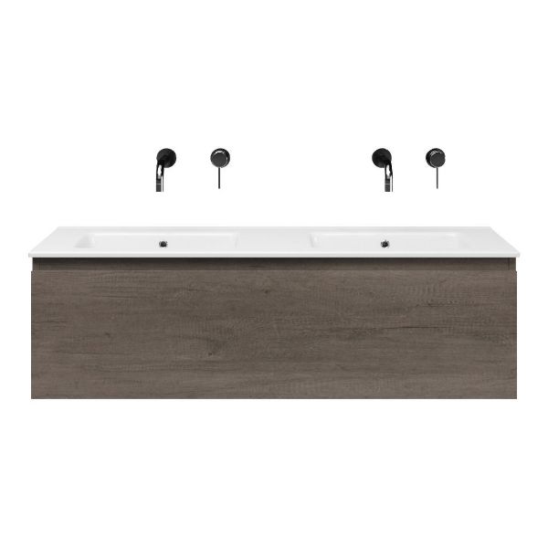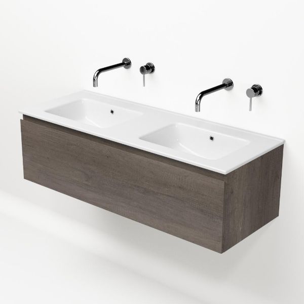 | | Bellanti Solo/Etna badmeubel 120x46 1 softclose lade olm donker grijs greeploos keramische wastafel dubbel wit zonder kraangaten |