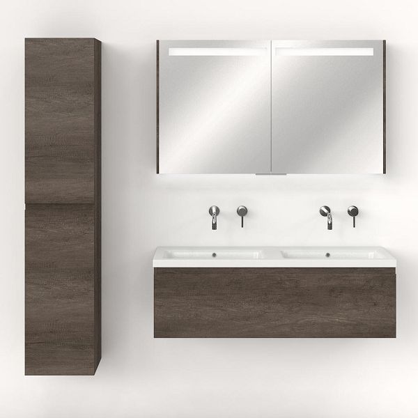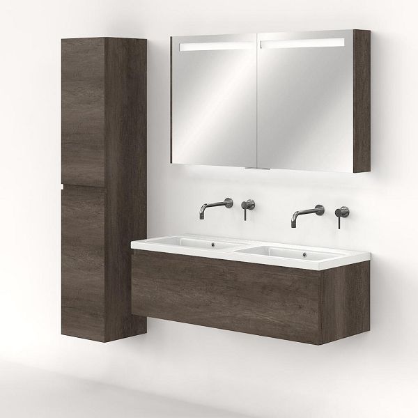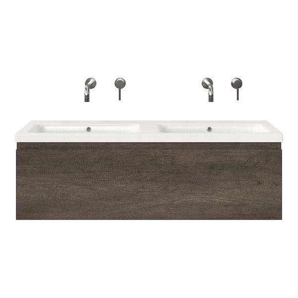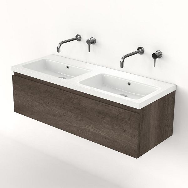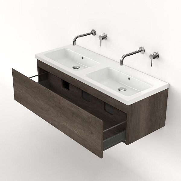 | | Bellanti Solo/Amelia badmeubel 120x46 1 softclose lade olm donker grijs greeploos keramische wastafel dubbel wit glans zonder kraangaten |