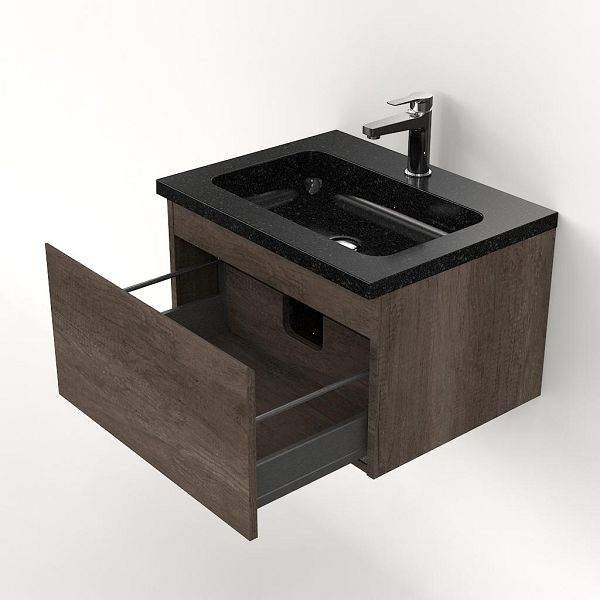 | Bellanti Solo/Square badmeubel 60x46 1 softclose lade olm donker grijs greeploos natuursteen wastafel shanxi black met 1 kraangat |