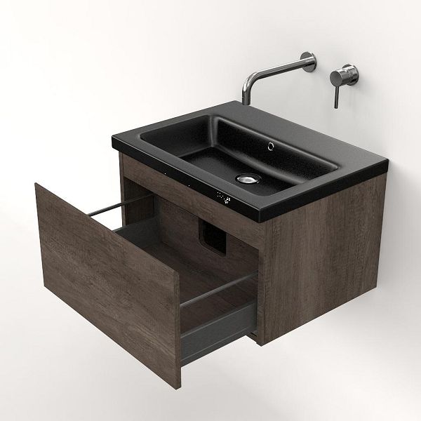 | | Bellanti Solo/Amelia badmeubel 60x46 1 softclose lade olm donker grijs greeploos keramische wastafel zwart mat zonder kraangaten |