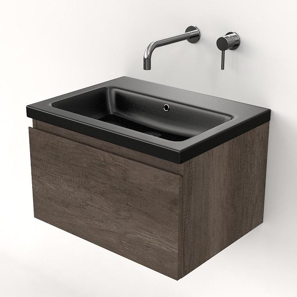| Bellanti Solo/Amelia badmeubel 60x46 1 softclose lade olm donker grijs greeploos keramische wastafel zwart mat zonder kraangaten |