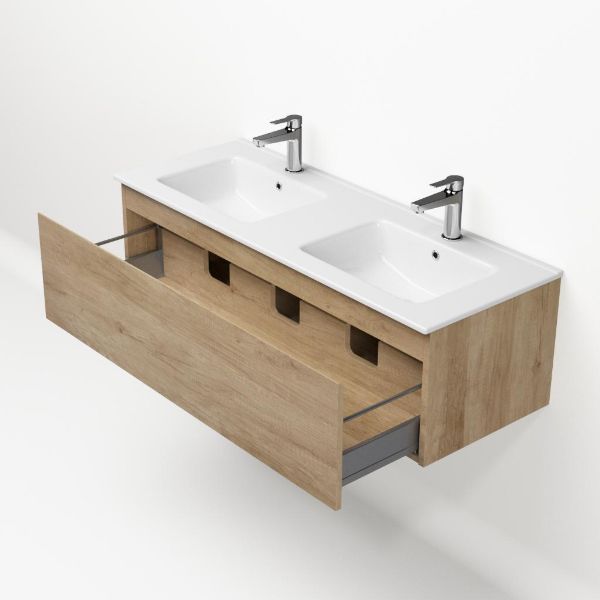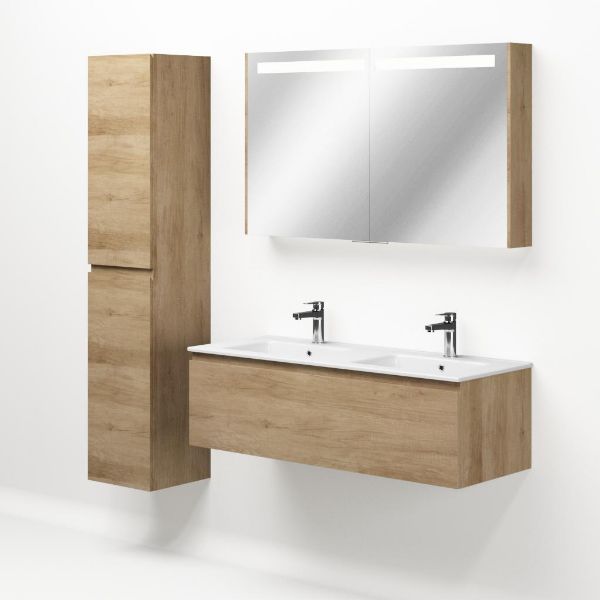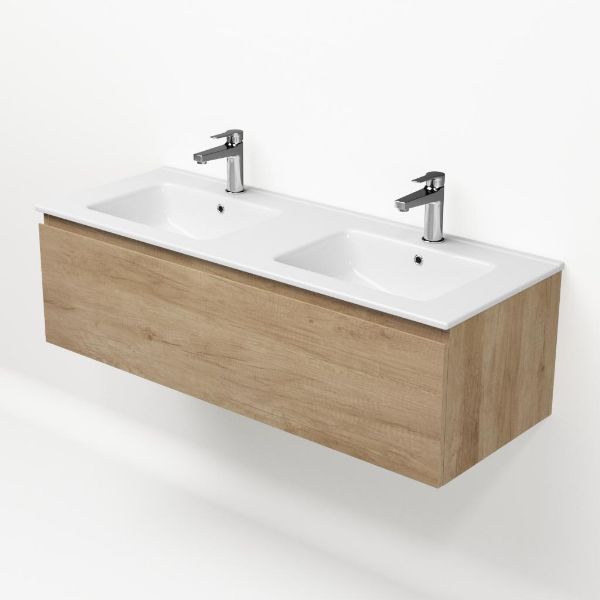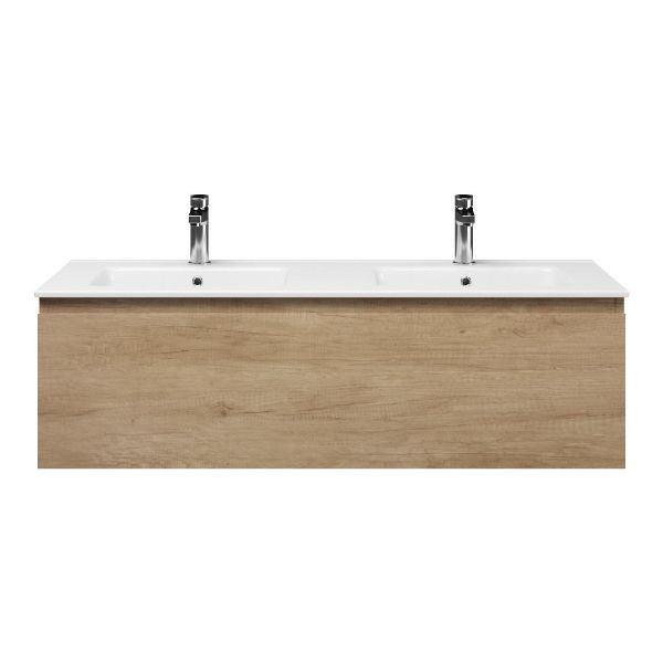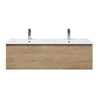 | Bellanti Solo/Etna badmeubel 120x46 1 softclose lade olm greeploos keramische wastafel dubbel wit met 2 kraangaten |