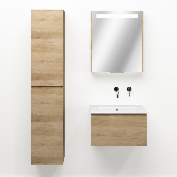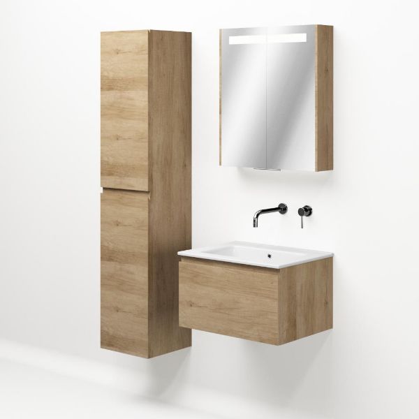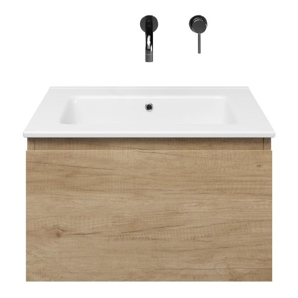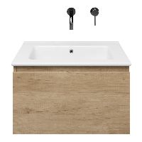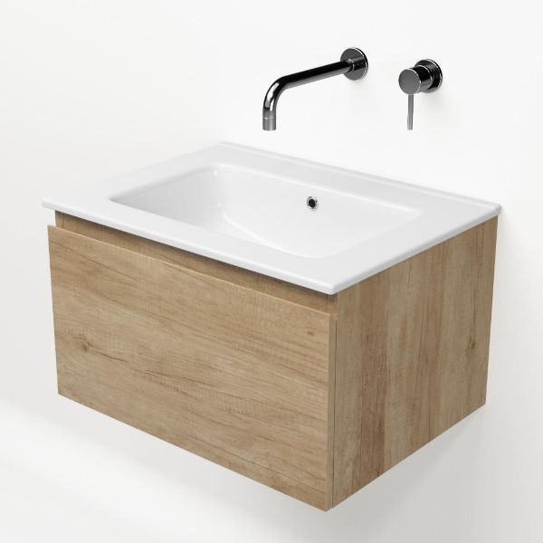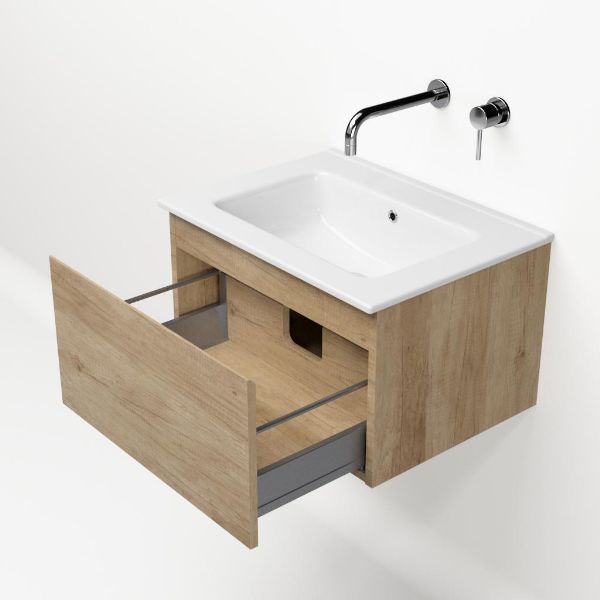 Greeploos badkamermeubel in de kleur olm is 60 cm breed. De wastafel is vervaardig in keramiek en heeft de kleur wit keramiek. Dit badkamermeubel met deze wastafel is leverbaar tussen de 60 cm t/m 120 cm